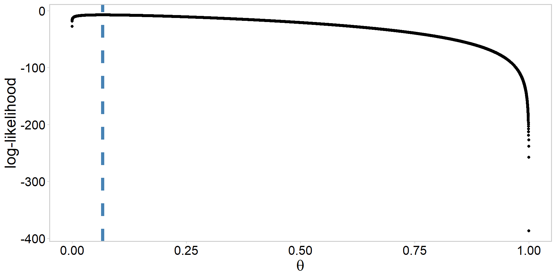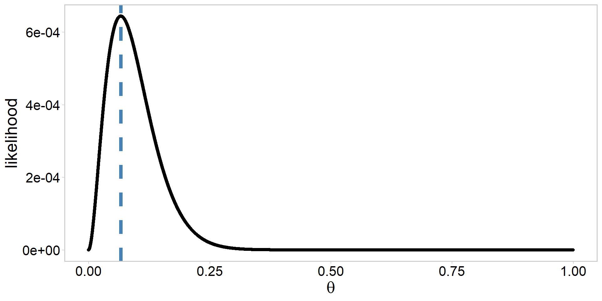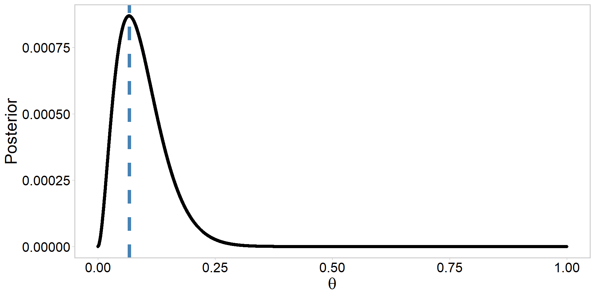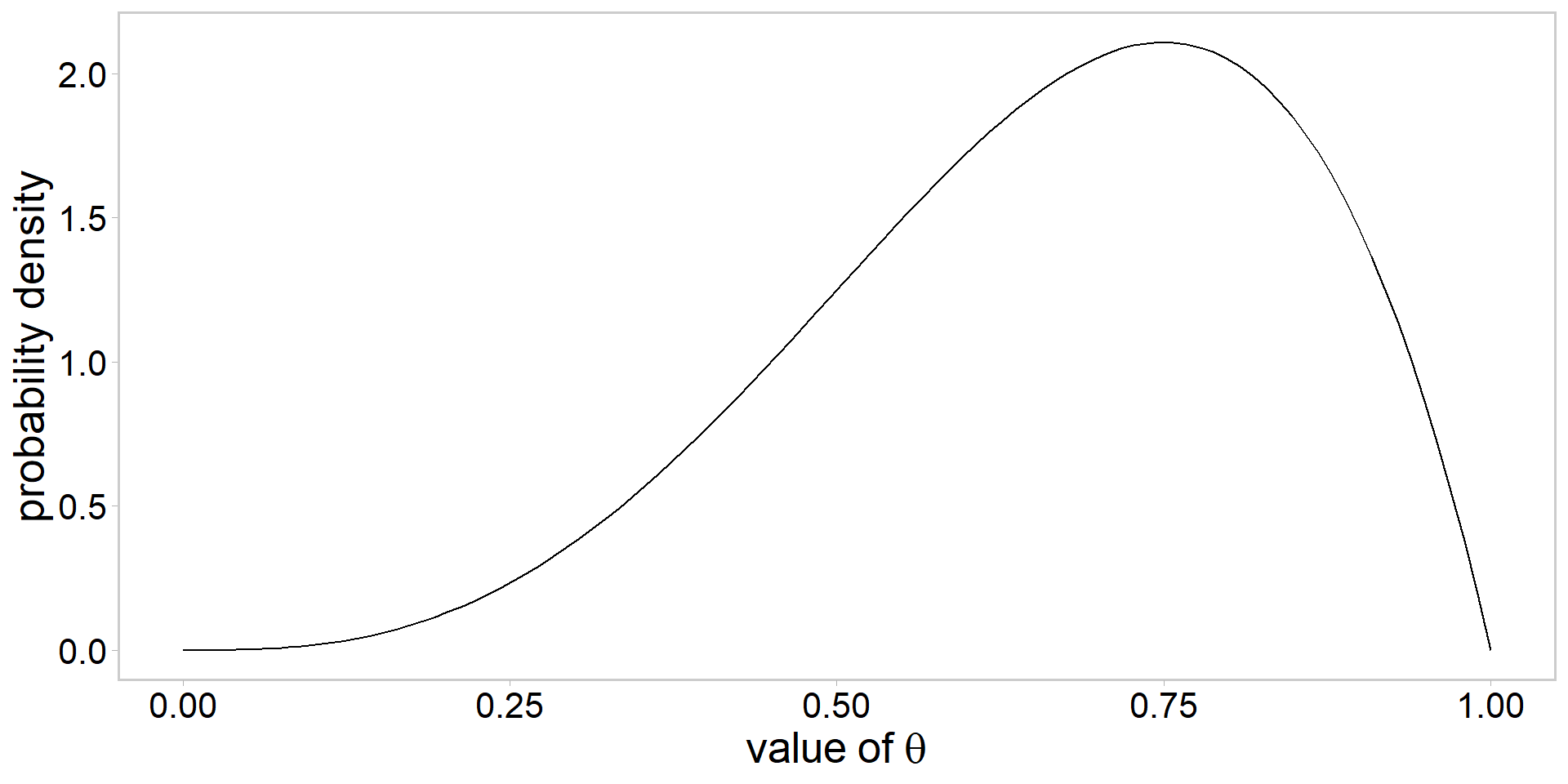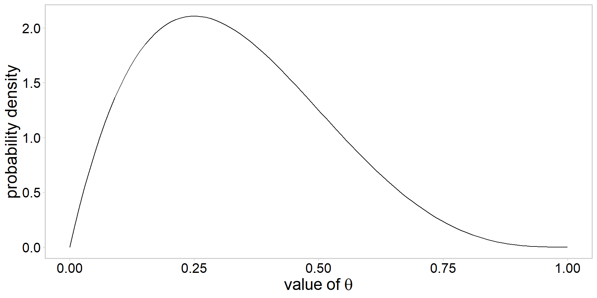 \text{the beta prior: } \color{#3697DC}{p(\theta) \propto \theta^{\alpha-1}(1-\theta)^{\beta-1}} \\