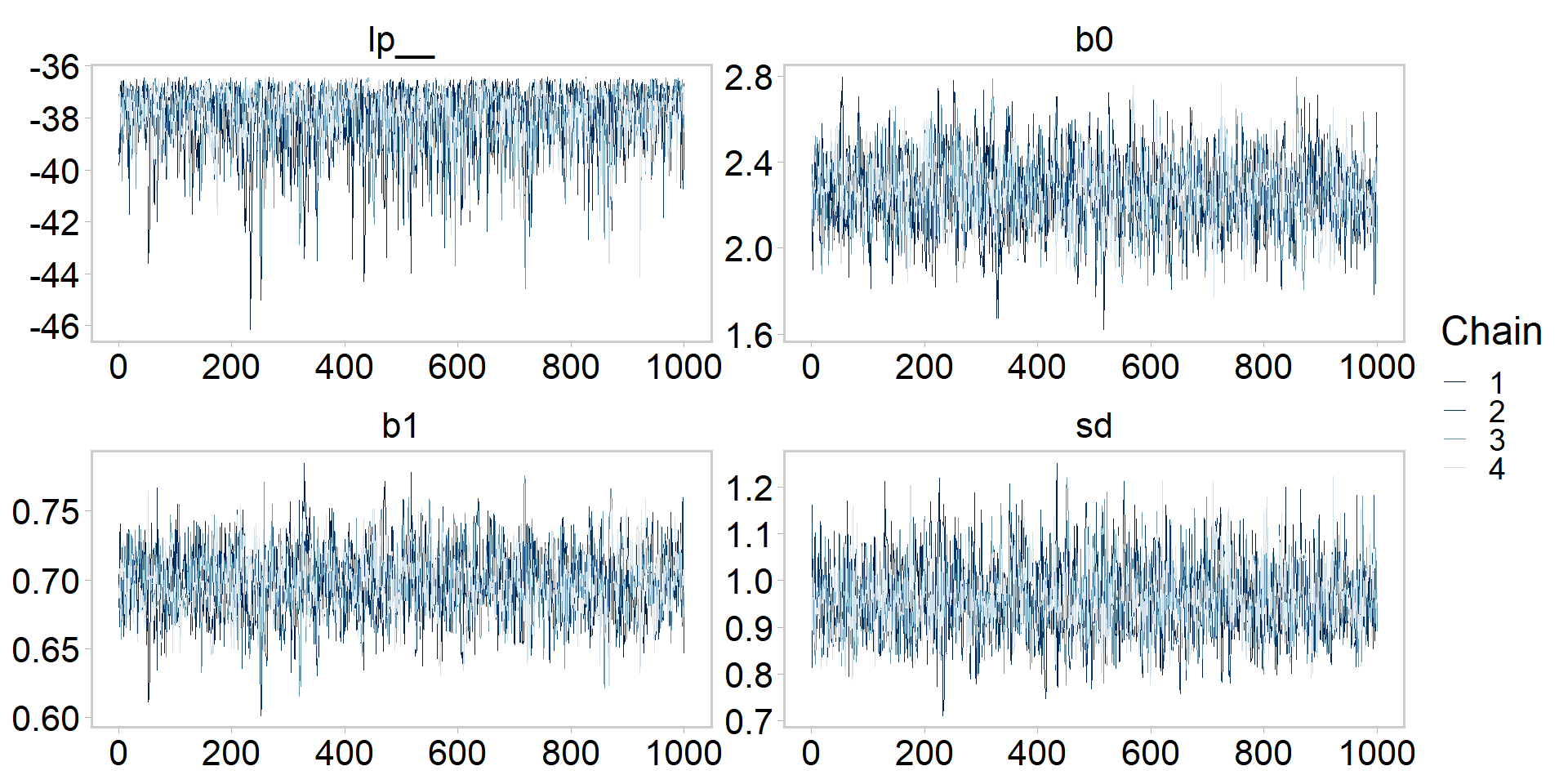 lp__ b0 b1 sd y_rep[1] y_rep[2] y_rep[3] y_rep[4]