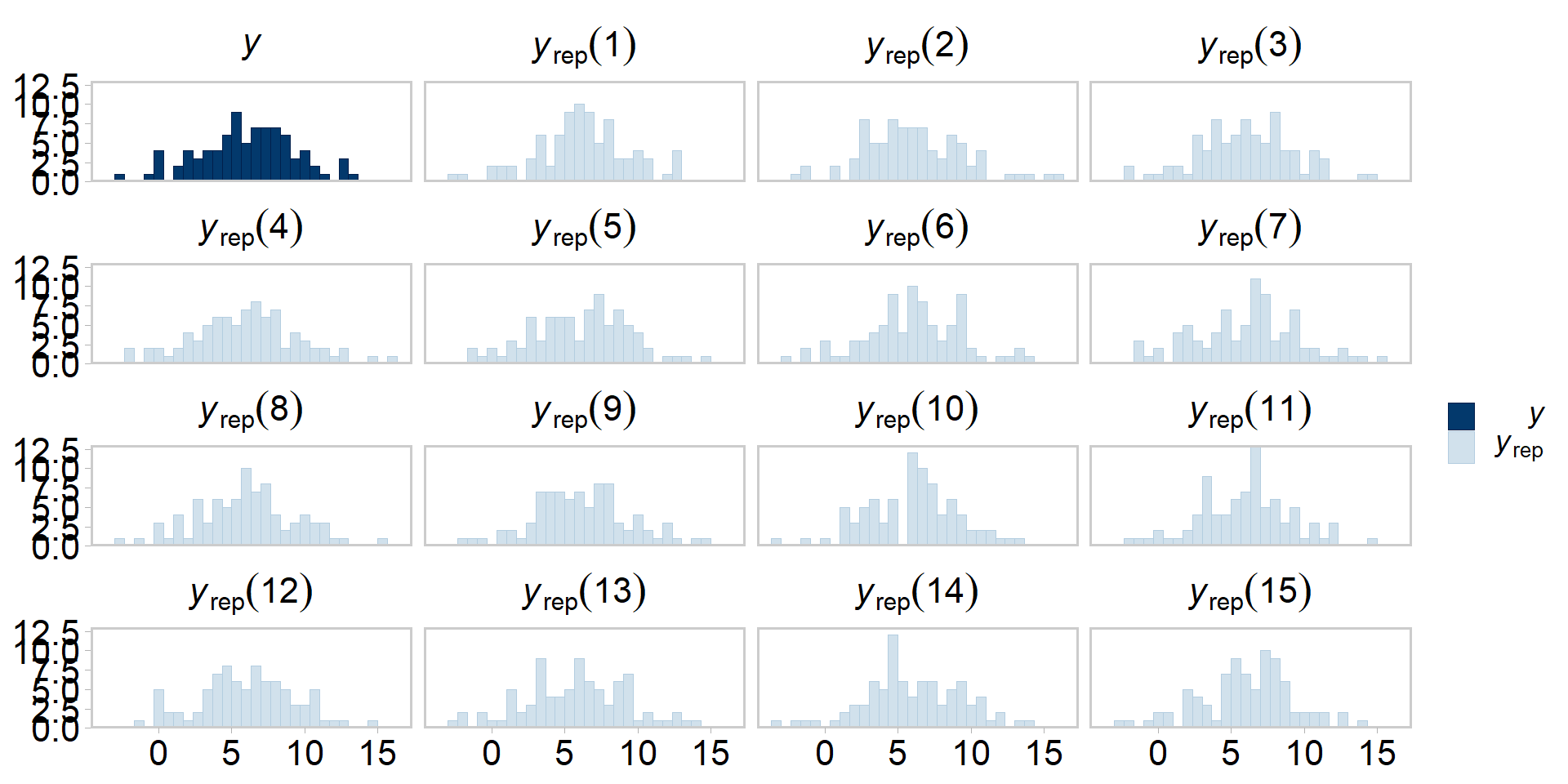 y_reps[ind, ] <- as.list(data$y) # replace a random y_rep with true y
