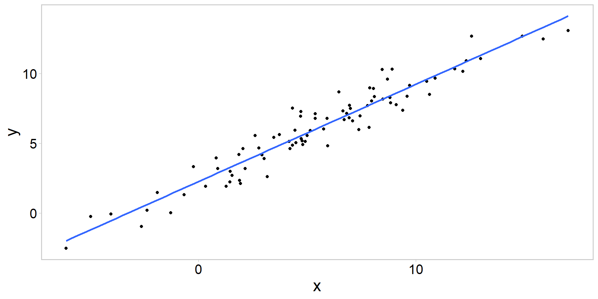 \[ y_{i} \sim \operatorname{normal}\left(\beta_{0}+\beta X_{i}, \sigma\right) . \]