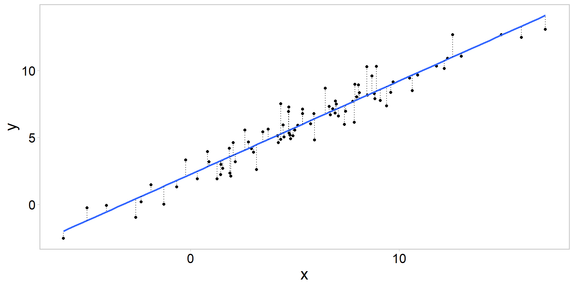 \[ y_{i}-\left(\beta_{0}+\beta X_{i}\right) \sim \operatorname{normal}(0, \sigma) \]