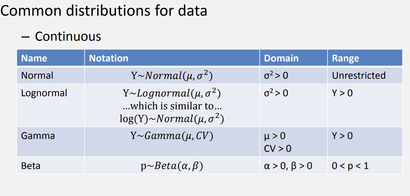 e.g., Poisson, binomial/Bernoulli, gamma, exponential, etc.