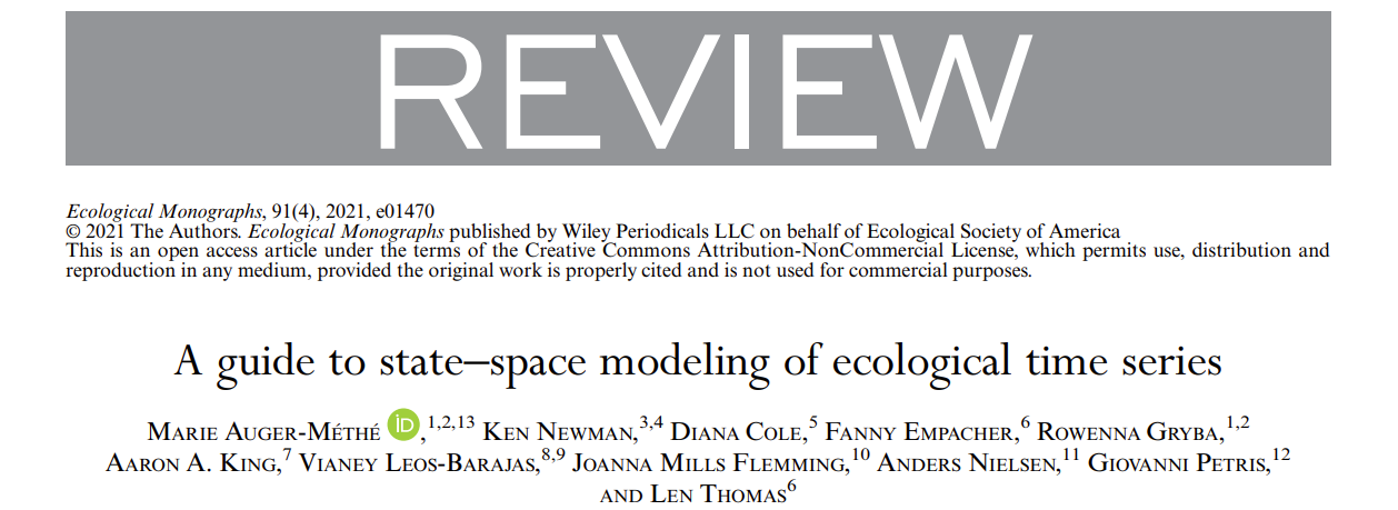 Auger-Methe et al. 2021. A guide to state-space modeling of ecological time series. Ecological Monographs.