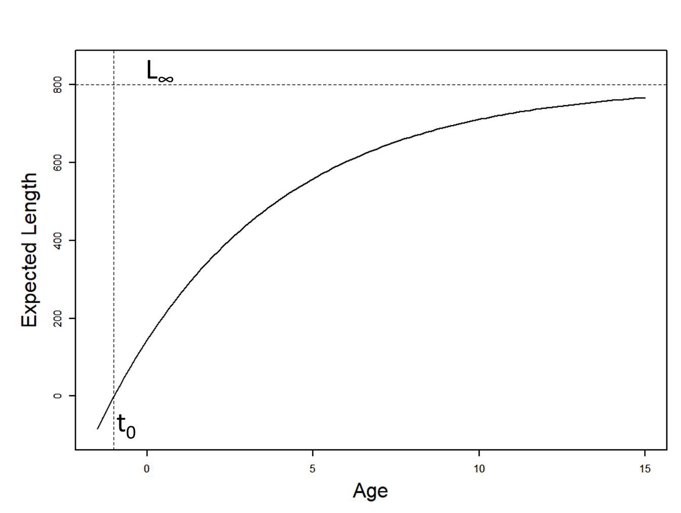\[ \begin{array}{l}L_{i}=L_{\infty}\left(1-e^{-K\left(a_{i}-t_{0}\right)}\right)+\varepsilon_{i} \\\varepsilon_{i} \stackrel{i i d}{\sim} N\left(0, \sigma^{2}\right)\end{array} \]