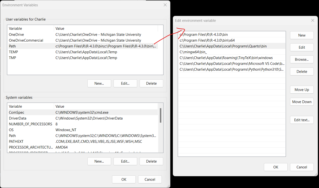However, there is still a chance that the User Environment PATH has been set by a previously installed program and that PATH could interfere with ADMB and TMB’s operation. This is most likely only going to be true if you previously installed ADStudio.